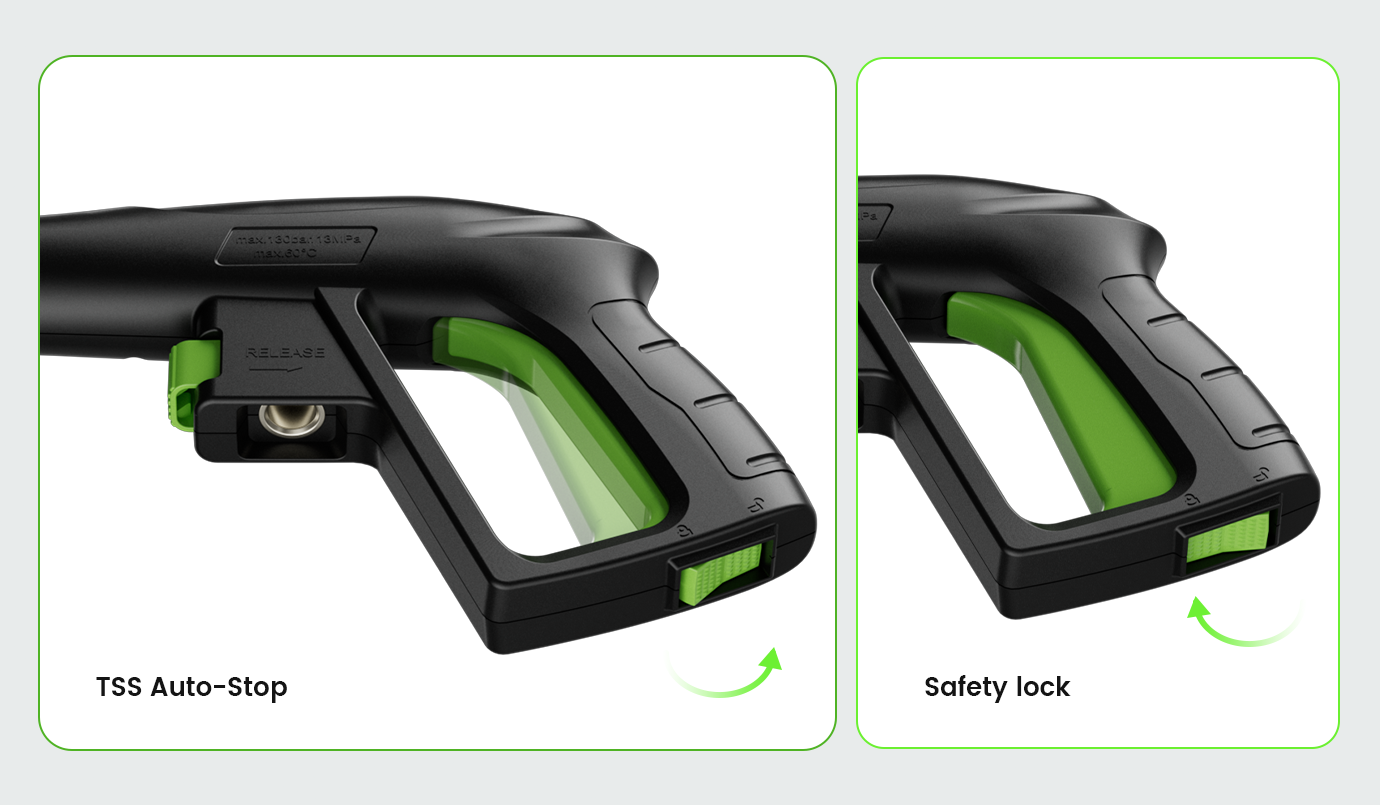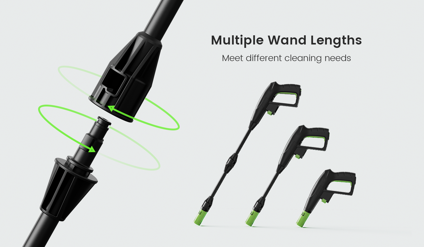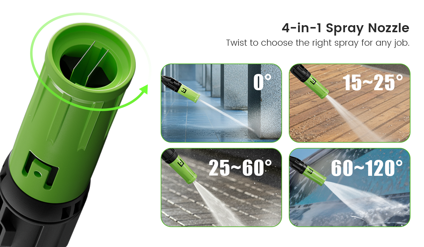 Smart Nozzle: 0°–120° adjustable spray for light to heavy cleaning.