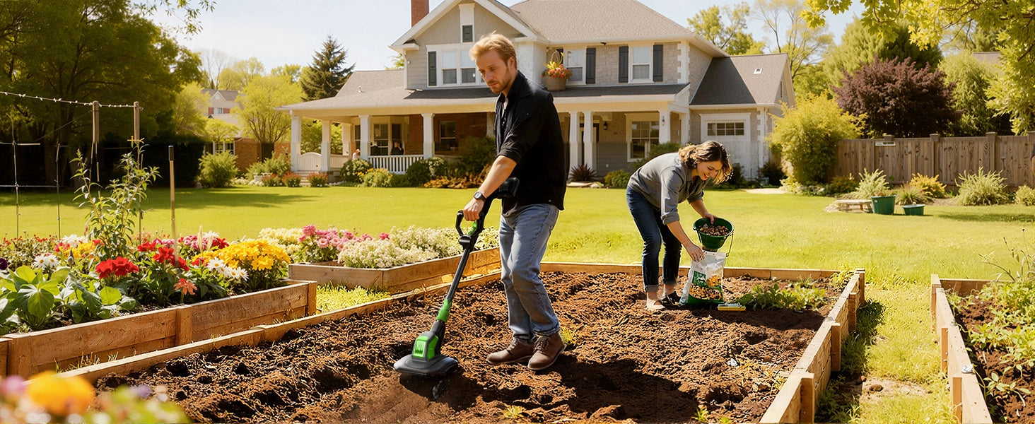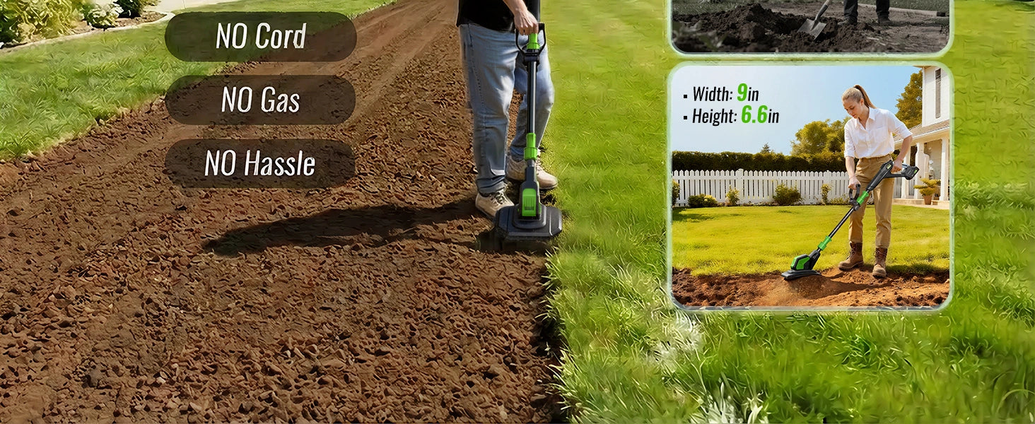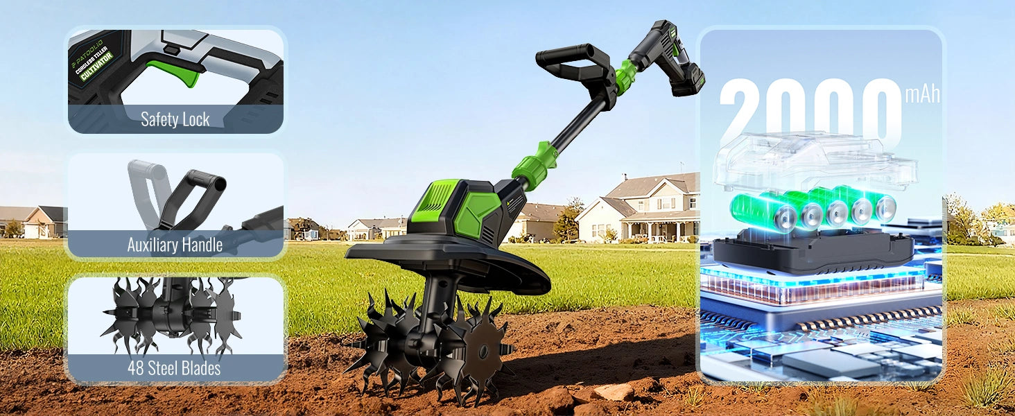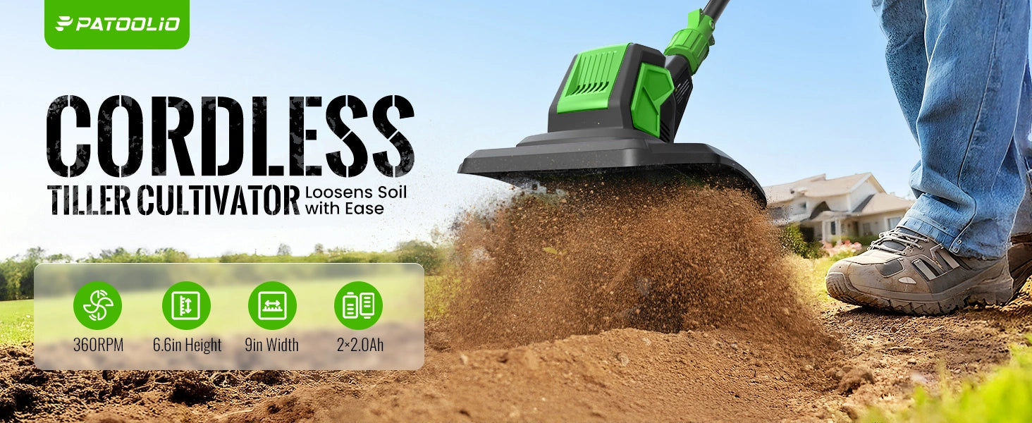 - Powerful & High Efficiency: 360RPM motor with 48 steel tines tills up to 9" wide and 6.6" deep with ease.