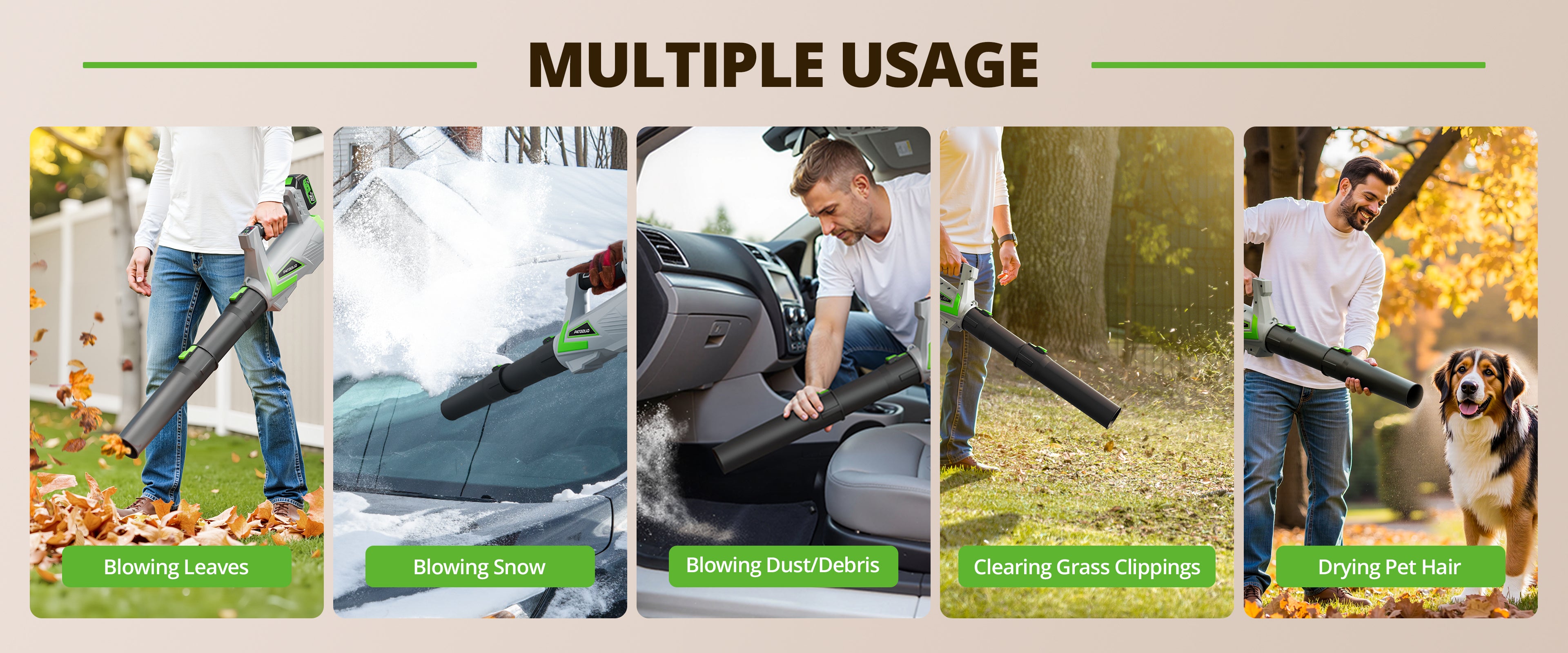 This leaf blower is amazing! The power is strong enough to clear all the leaves and debris in my yard with minimal effort. It’s lightweight and super easy to use—even I can operate it comfortably for a long time. The noise level is lower than expected, which is a big plus. Battery life is also impressive; one charge lasts long enough to finish the whole yard. It has made yard work so much easier, especially in the fall. Highly recommend to anyone with a garden or outdoor space!