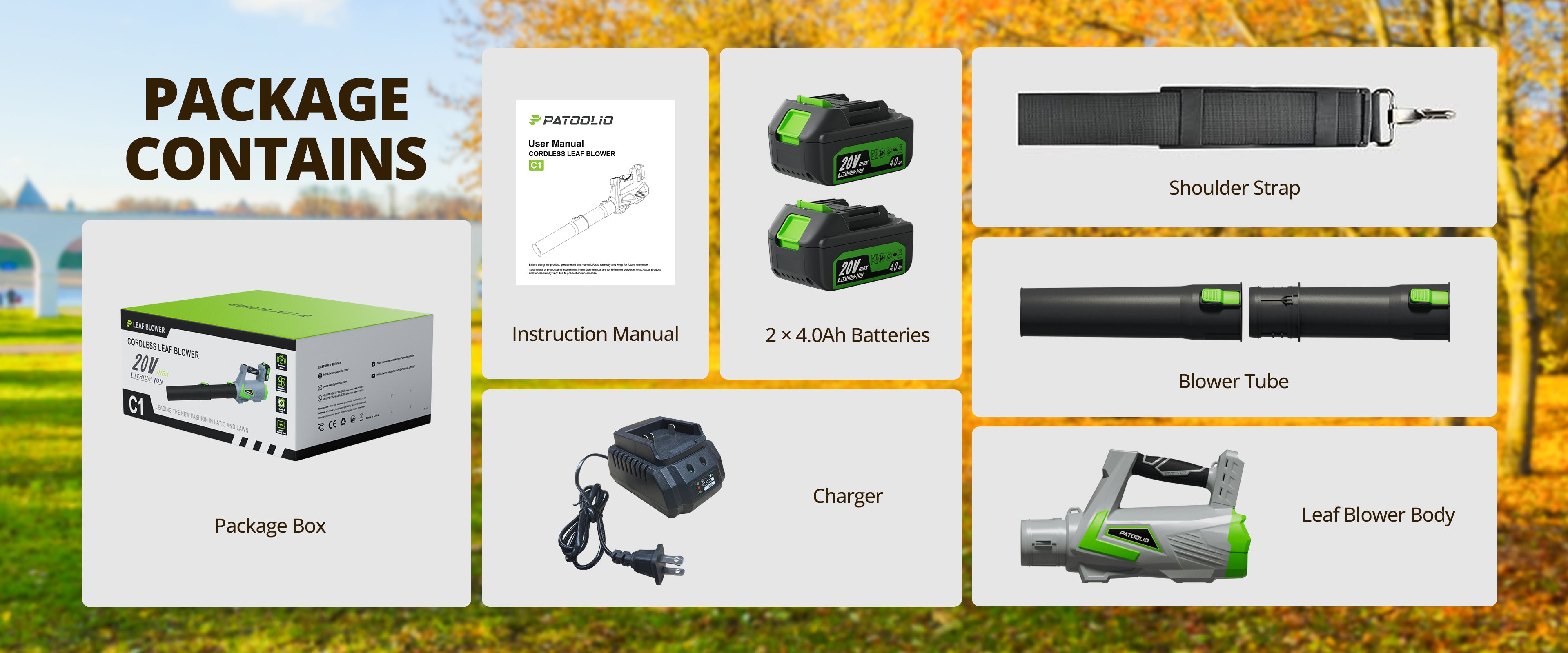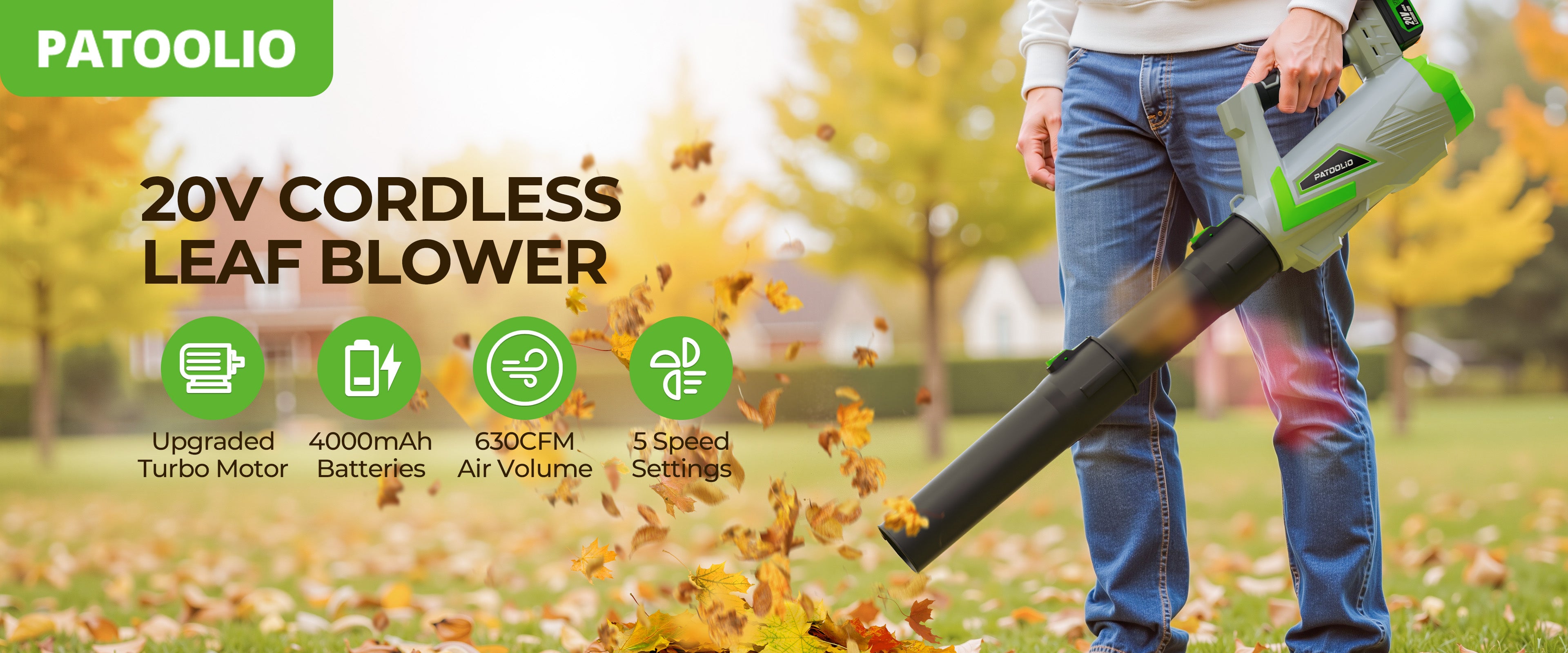 Powerful, Convenient, and Great Battery Life — Almost Perfect!This cordless leaf blower from Patoolio exceeded my expectations. It delivers strong power with 5 adjustable speed settings, allowing me to switch easily between light cleanup and more demanding tasks like clearing thick leaves or light snow.The two 4000mAh batteries are a big plus—together, they gave me enough runtime to clean the entire yard in one go. I like the simple red/green charging indicator.It’s lightweight and easy to use, with a comfortable shoulder strap that helps reduce fatigue during longer jobs. The dual-tube design makes setup quick, and the cordless operation is super convenient—no cords to trip over!One small improvement I’d love to see: a narrowing nozzle attachment or adjustable head for more focused airflow. That would make it even better for tight spaces or stubborn debris.Still, for the power, runtime, and price, this is a fantastic blower. Highly recommended!
