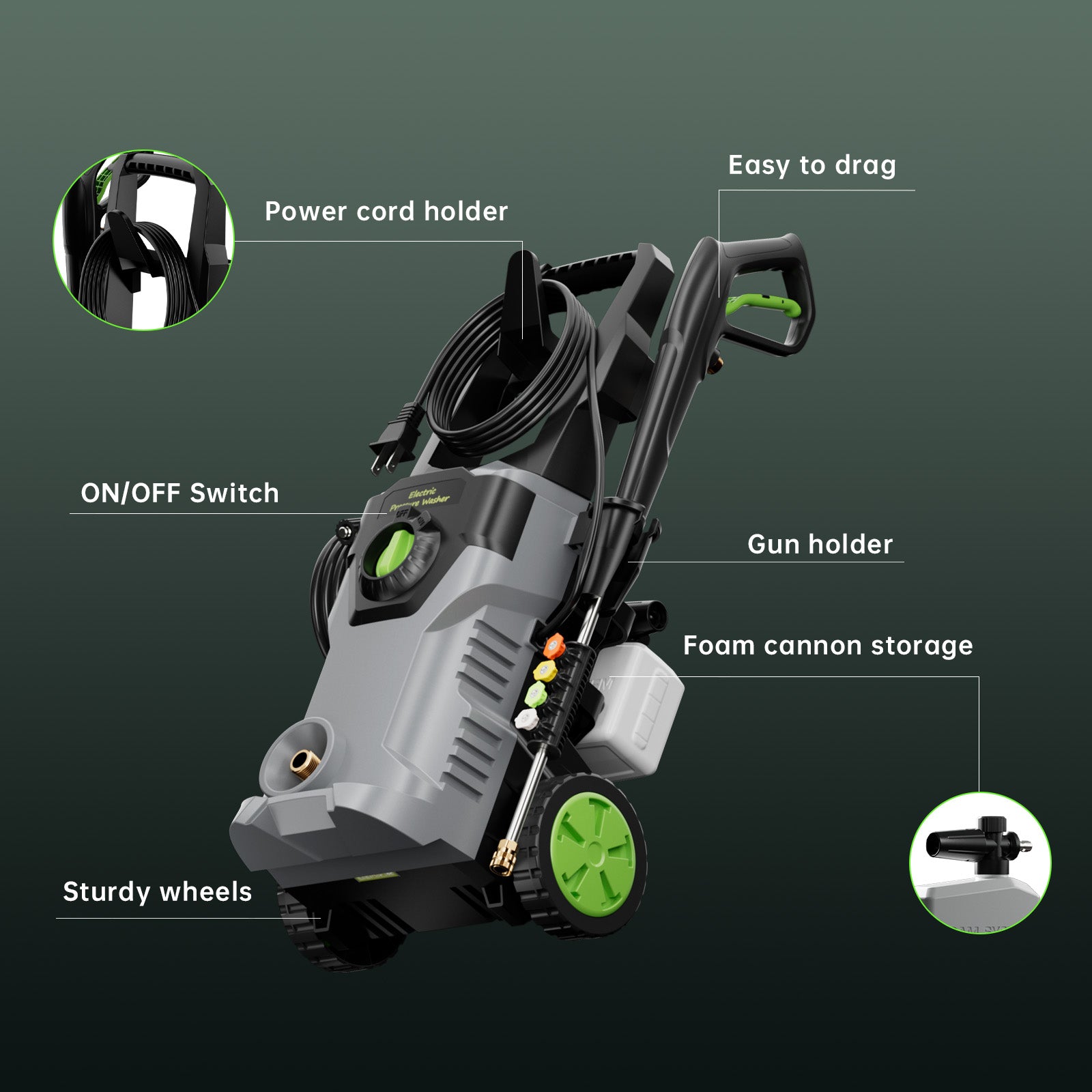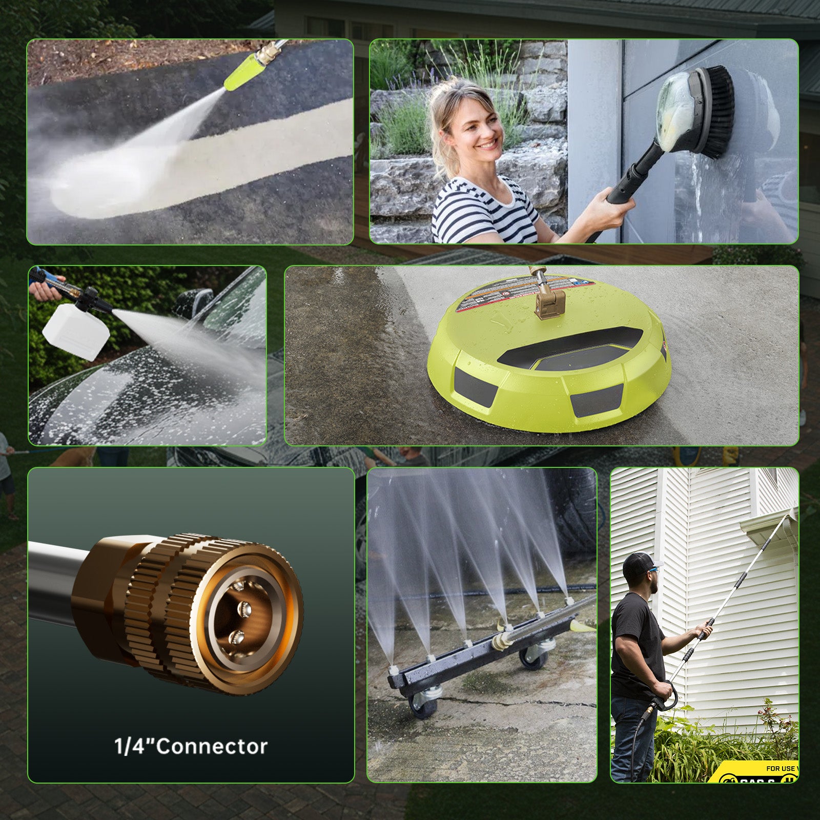 Efficient & Eco-Friendly: Lightweight, water-saving, with 4 nozzles + foam cannon for easy car washes.
