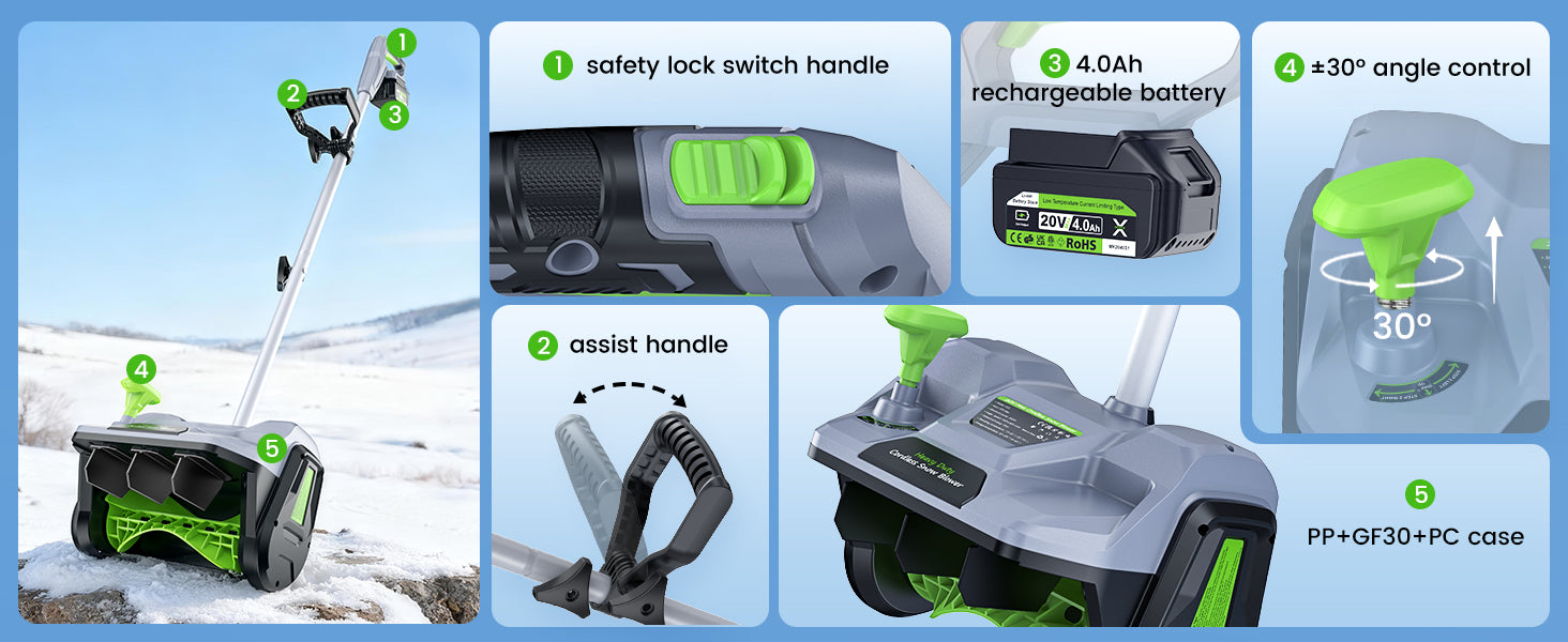 - Long Runtime: 20V battery clears up to 6 driveways per charge.